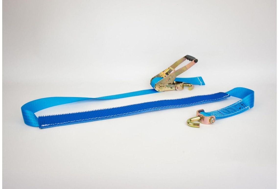 De spanband voor autotransport heeft een totale lengte van 2,5 meter en bestaat uit een ratel voorzien van een vingerhaak en een windseldeel met antisliphoes en vingerhaak. De blauwe verplichte labels volgens norm EN 12195-2:2000 worden standaard ingenaaid, zodat ze niet snel uitscheuren en de spanband niet meer bruikbaar is.
