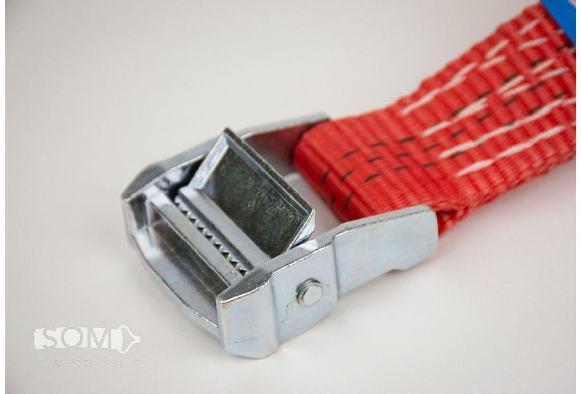De sjorband is samengesteld uit hoogwaardig geweven polyester (PES) en is voorzien van een dubbelgeveerde klemgesp van verzinkt staal. Dit product voldoet aan alle wet- en regelgeving omtrent ladingzekering, zoals de EN12195-2 normering.