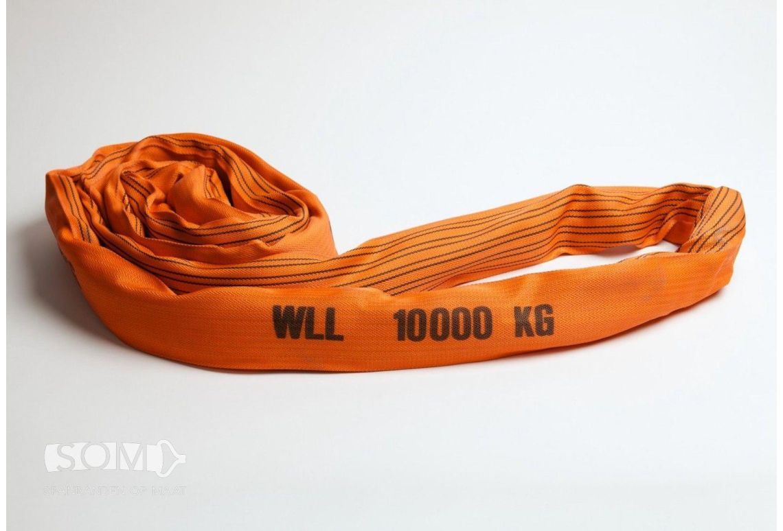 Rondstroppen zijn nodig om (zware) objecten en materialen te stroppen en te hijsen. De rondstroppen hebben, net als hijsbanden, een standaard kleur zoals deze in de norm EN 1492-2 is omschreven. Zo heeft deze oranje rondstrop een werklast van 10 ton - 10.000 kg.