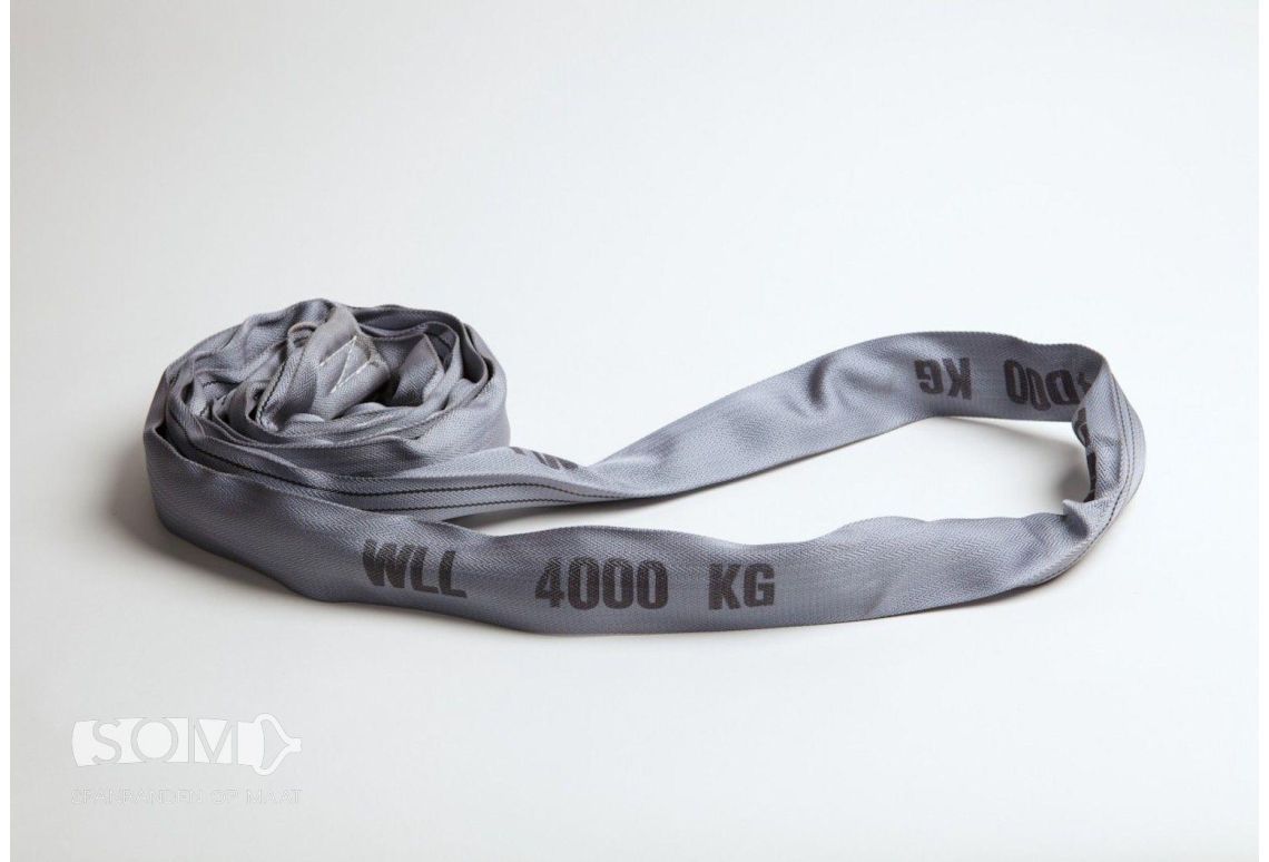 Rondstroppen zijn nodig om (zware) objecten en materialen te stroppen en te hijsen. De rondstroppen hebben, net als hijsbanden, een standaard kleur zoals deze in de norm EN 1492-2 is omschreven. Zo heeft deze grijze rondstrop een werklast van 4 ton - 4000 kg.