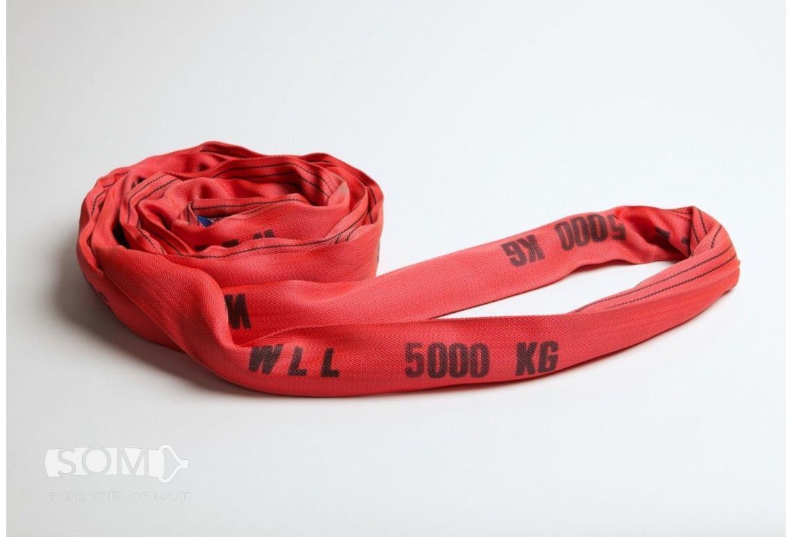 Rondstroppen zijn nodig om (zware) objecten en materialen te stroppen en te hijsen. De rondstroppen hebben, net als hijsbanden, een standaard kleur zoals deze in de norm EN 1492-2 is omschreven. Zo heeft deze rode rondstrop een werklast van 5 ton - 5000 kg.