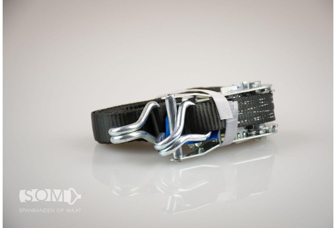 Deze spanband is samengesteld uit hoogwaardig geweven polyester (PES) en voldoet aan alle wet- en regelgeving omtrent ladingzekering, zoals de EN12195-2 normering. Dit staat ook vermeld op het verplichte blauwe label. Daarnaast zijn de spanbanden voorzien van een ingenaaide label, zodat deze niet snel beschadigd raakt. De hardware is voorzien van een zinklaag (Chroom 6 vrij) om corrosie tegen te gaan.