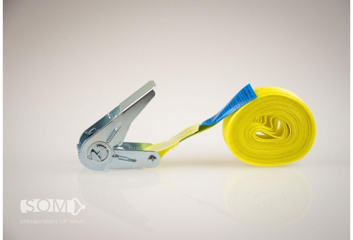 Deze spanband is samengesteld uit hoogwaardig geweven polyester (PES) en voldoet aan alle wet- en regelgeving omtrent ladingzekering, zoals de EN12195-2 normering. Daarnaast zijn de spanbanden voorzien van een ingenaaid label, zodat deze niet snel beschadigd raakt. De hardware is voorzien van een zinklaag (Chroom 6 vrij) om corrosie tegen te gaan.