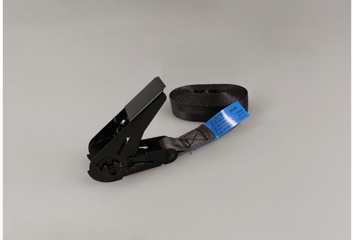 Deze 1-delige spanband van 25 mm is verkrijgbaar in verschillende lengtes en bandkleuren. Deze spanband is voorzien van volledig zwart gecoate ratel en zwarte stiksels.