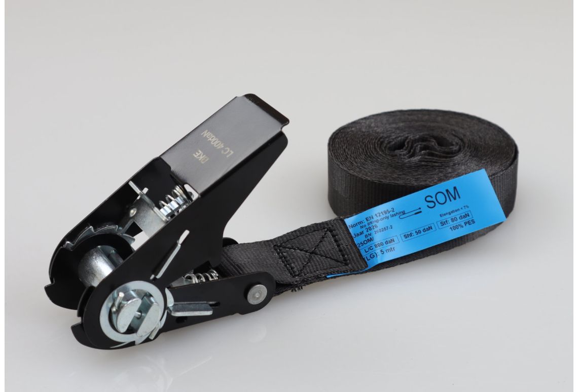 Deze spanband is samengesteld uit hoogwaardig geweven polyester (PES) en voldoet aan alle wet- en regelgeving omtrent ladingzekering, zoals de EN12195-2 normering. Daarnaast zijn de spanbanden voorzien van een ingenaaid label, zodat deze niet snel beschadigd raakt. De hardware is voorzien van een zinklaag (Chroom 6 vrij) om corrosie tegen te gaan.