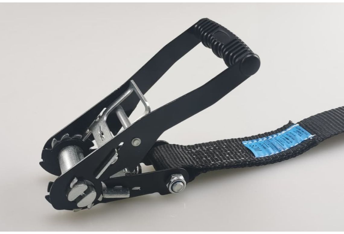 Deze spanband is samengesteld uit hoogwaardig geweven polyester (PES) en voldoet aan alle wet- en regelgeving omtrent ladingzekering, zoals de EN12195-2 normering. Daarnaast zijn de spanbanden voorzien van een ingenaaid label, zodat deze niet snel beschadigd raakt. De hardware is voorzien van een zinklaag (Chroom 6 vrij) om corrosie tegen te gaan. Daarnaast is de ratel voorzien van een zwarte coating.