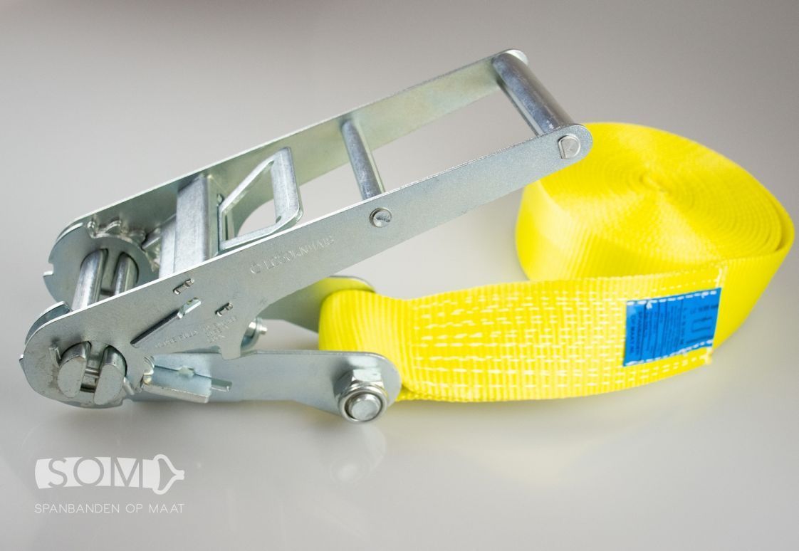 Deze spanband is samengesteld uit hoogwaardig geweven polyester (PES) en voldoet aan alle wet- en regelgeving omtrent ladingzekering, zoals de EN12195-2 normering. Het label van de spanband is ingenaaid, zodat deze niet snel beschadigd raakt. De hardware is voorzien van een zinklaag (Chroom 6 vrij) om corrosie tegen te gaan.