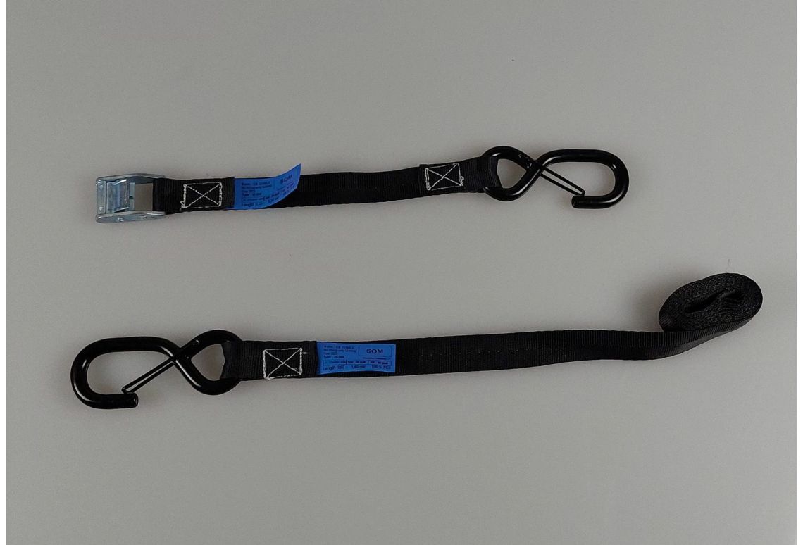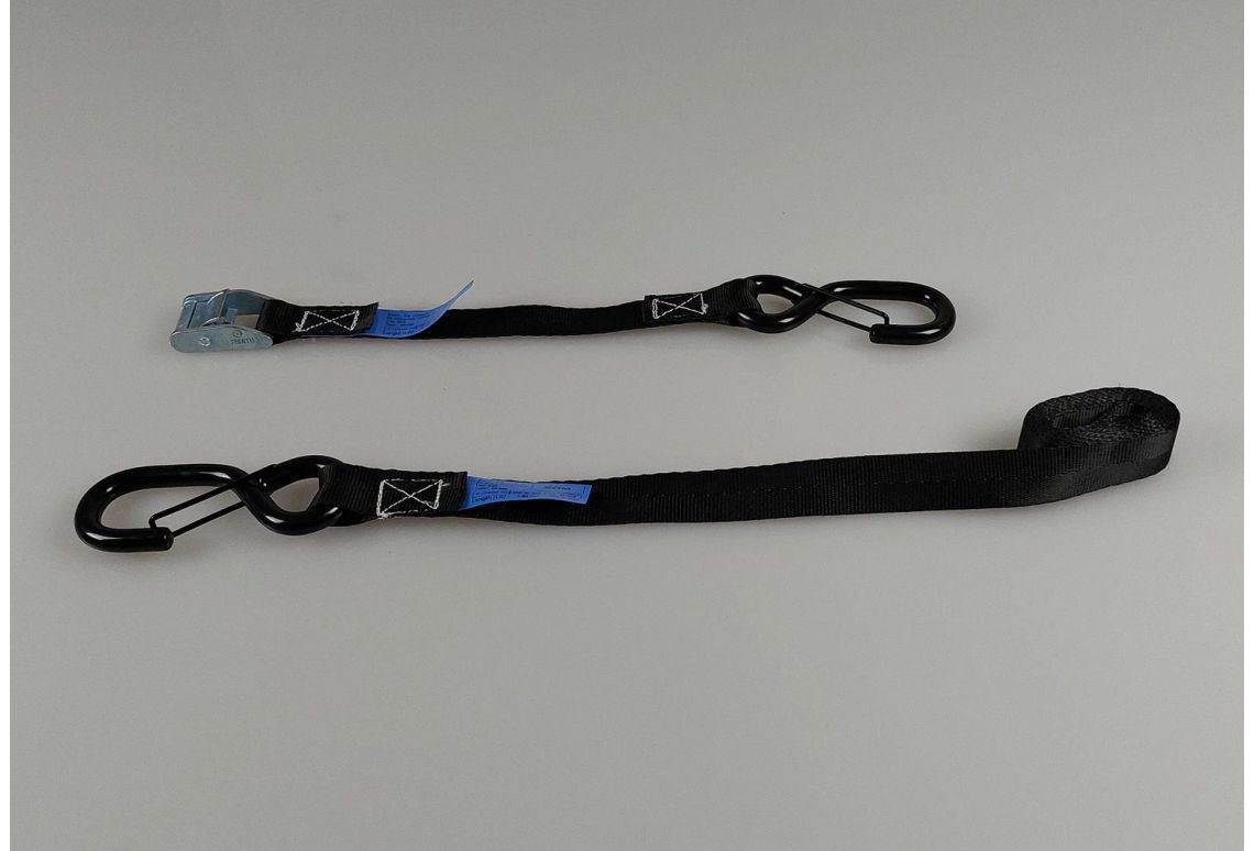 Deze spanband motor: tie-down met klemgesp en haken is samengesteld uit hoogwaardig geweven polyester (PES) en voldoet aan alle wet- en regelgeving omtrent ladingzekering, zoals de EN12195-2 normering. Daarnaast is de spanband motor: tie-down voorzien van een ingenaaid label, zodat deze niet snel beschadigd raakt. De hardware is voorzien van een zinklaag (Chroom 6 vrij) om corrosie tegen te gaan. Naast de zinklaag, hebben de haken een zwarte vinyl coating om beschadigingen aan je motorfiets te voorkomen.